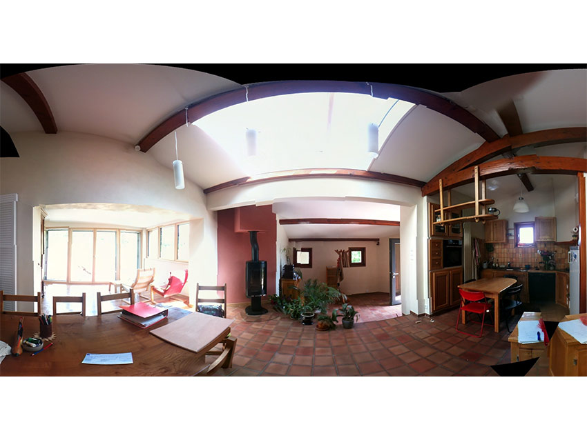 • Peinture à la chaux dans le salon et intégration d’une verrière en toiture.